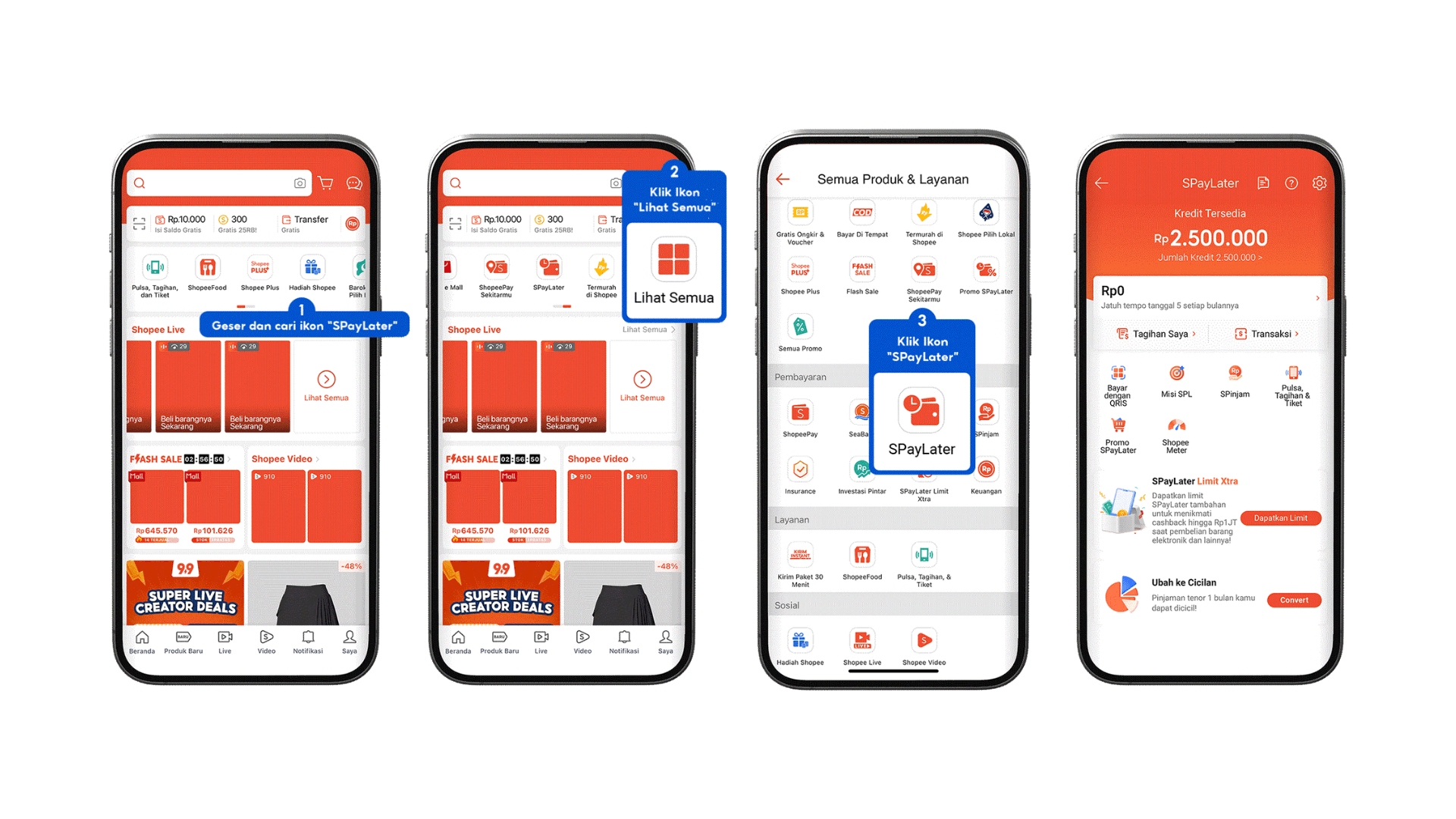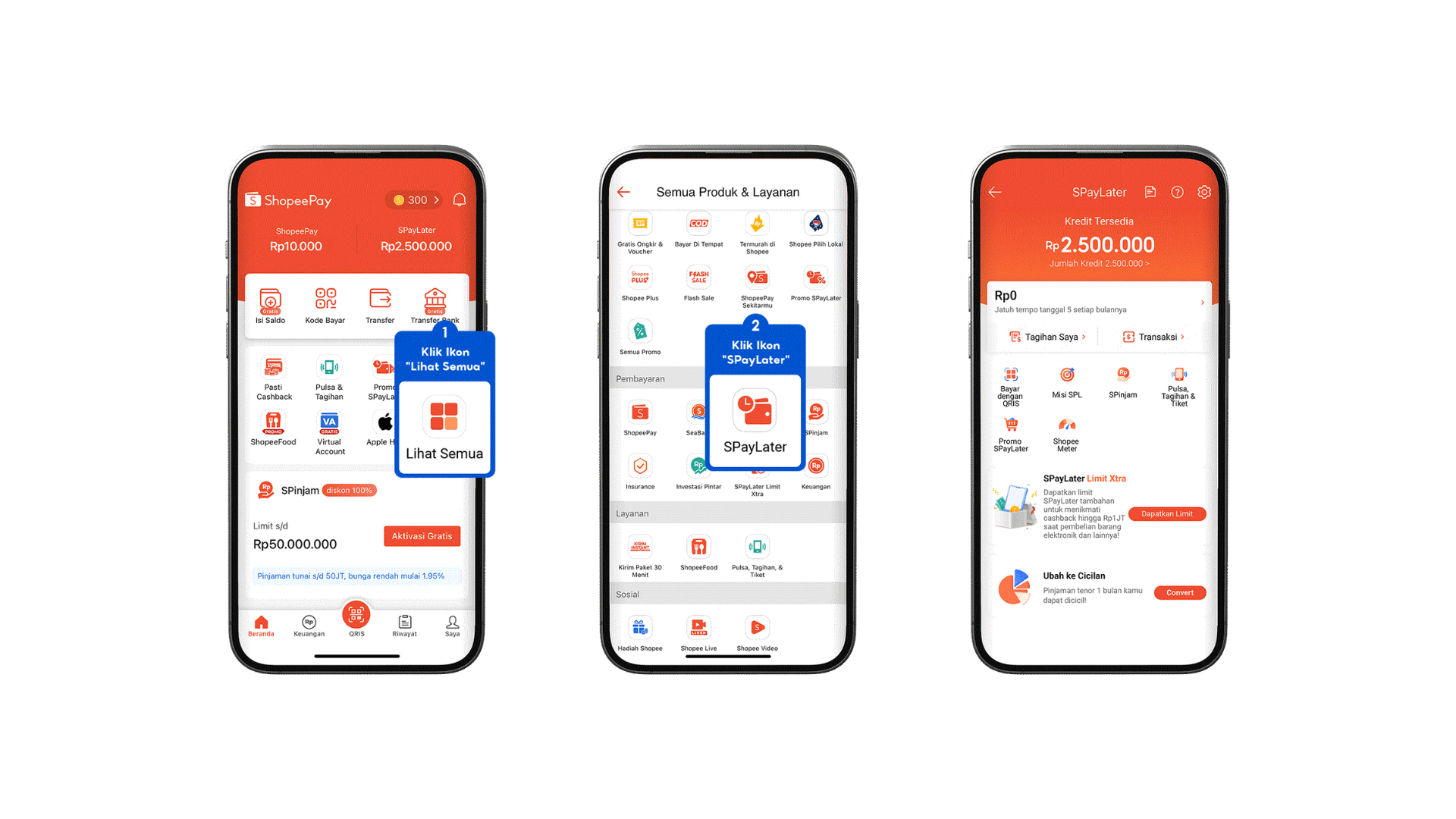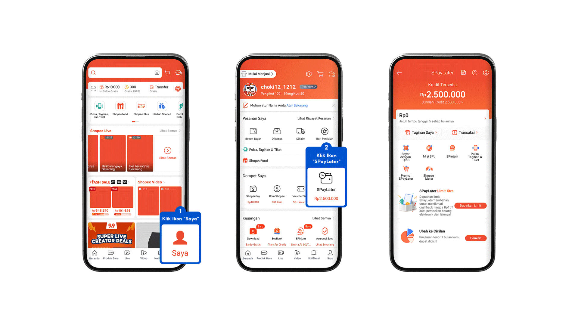 Saat ini SPayLater dapat digunakan di aplikasi Shopee dan aplikasi ShopeePay. Untuk mengetahui cara mengaksesnya, simak langkah-langkah berikut ini: